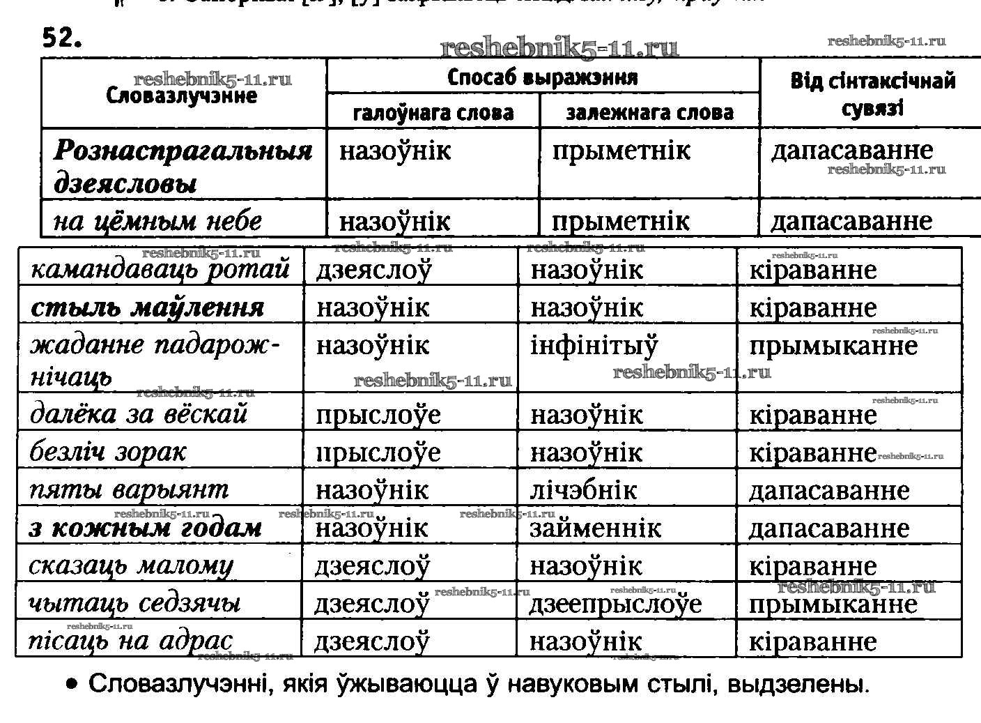 Готовая домашняя работа с ответами по Белорусскому языку за 8 класс Бадзевіч, Саматыя Учебник Национальный институт образования 2015 ФГОС - Упражнения 52