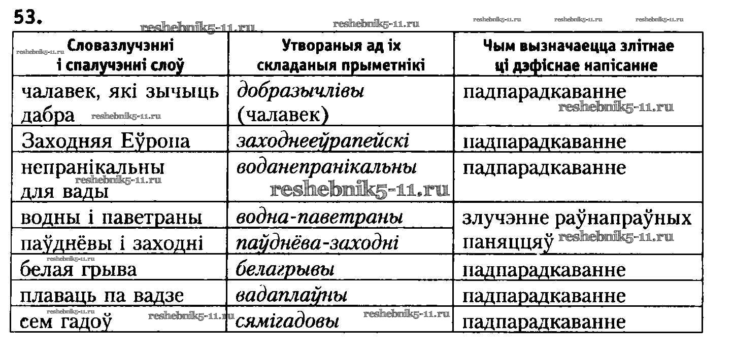 Готовая домашняя работа с ответами по Белорусскому языку за 8 класс Бадзевіч, Саматыя Учебник Национальный институт образования 2015 ФГОС - Упражнения 53