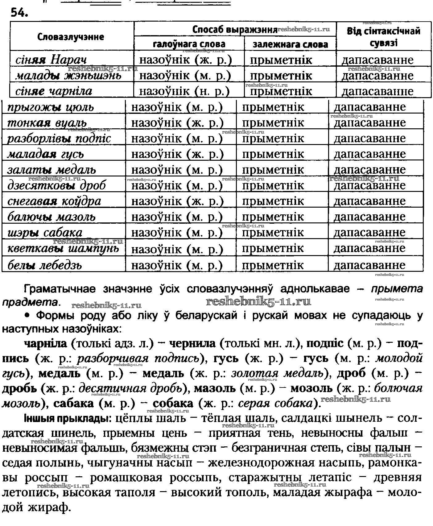 Готовая домашняя работа с ответами по Белорусскому языку за 8 класс Бадзевіч, Саматыя Учебник Национальный институт образования 2015 ФГОС - Упражнения 54