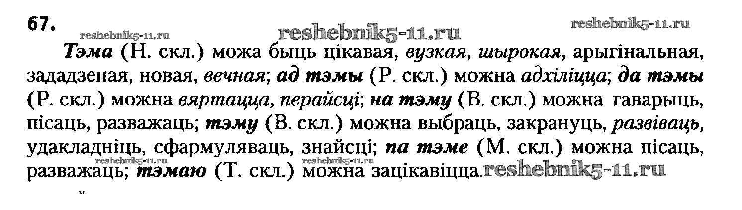 Готовая домашняя работа с ответами по Белорусскому языку за 8 класс Бадзевіч, Саматыя Учебник Национальный институт образования 2015 ФГОС - Упражнения 67