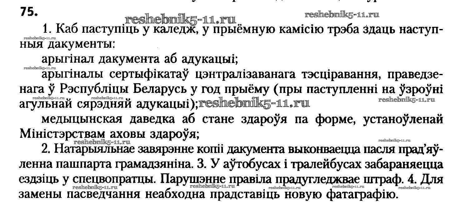 Готовая домашняя работа с ответами по Белорусскому языку за 8 класс Бадзевіч, Саматыя Учебник Национальный институт образования 2015 ФГОС - Упражнения 75