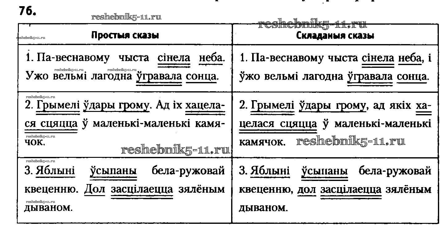 Готовая домашняя работа с ответами по Белорусскому языку за 8 класс Бадзевіч, Саматыя Учебник Национальный институт образования 2015 ФГОС - Упражнения 76