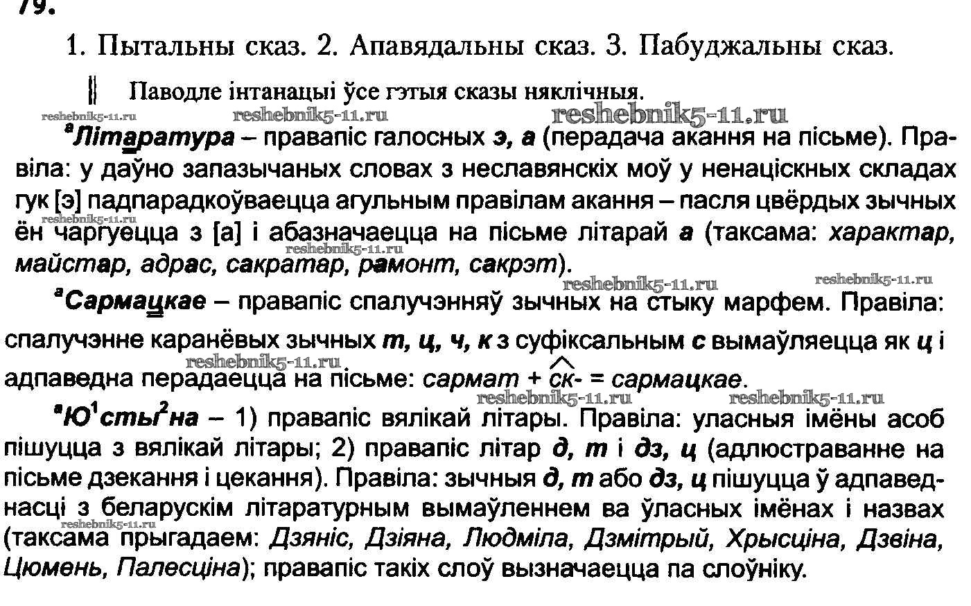 Готовая домашняя работа с ответами по Белорусскому языку за 8 класс Бадзевіч, Саматыя Учебник Национальный институт образования 2015 ФГОС - Упражнения 79