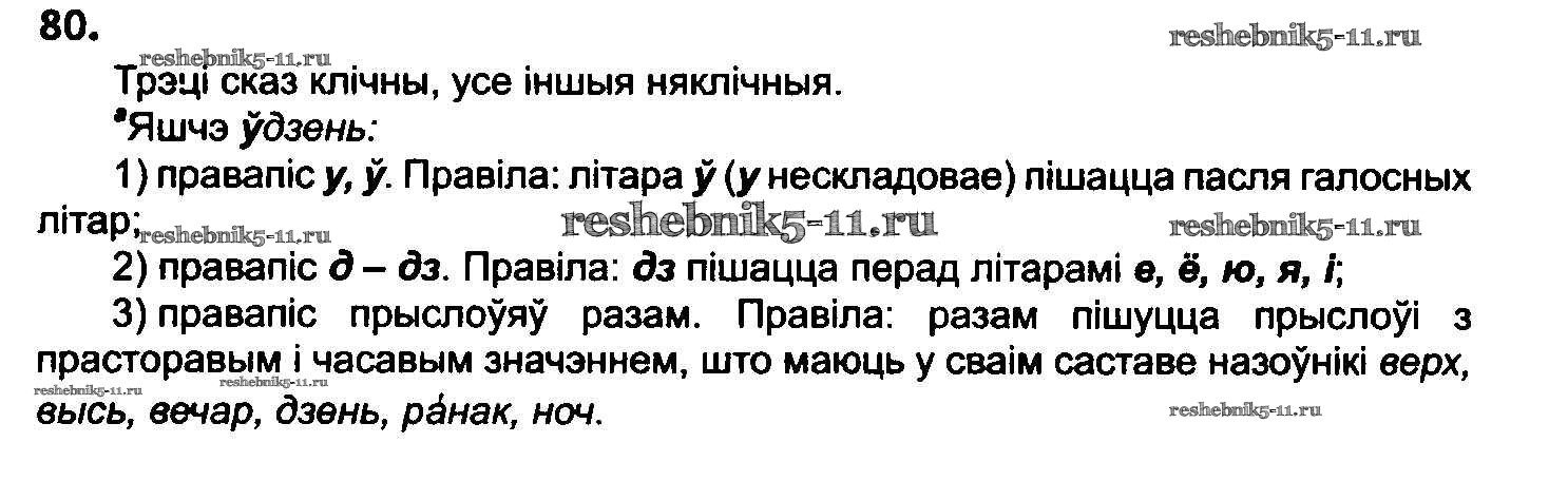 Готовая домашняя работа с ответами по Белорусскому языку за 8 класс Бадзевіч, Саматыя Учебник Национальный институт образования 2015 ФГОС - Упражнения 80