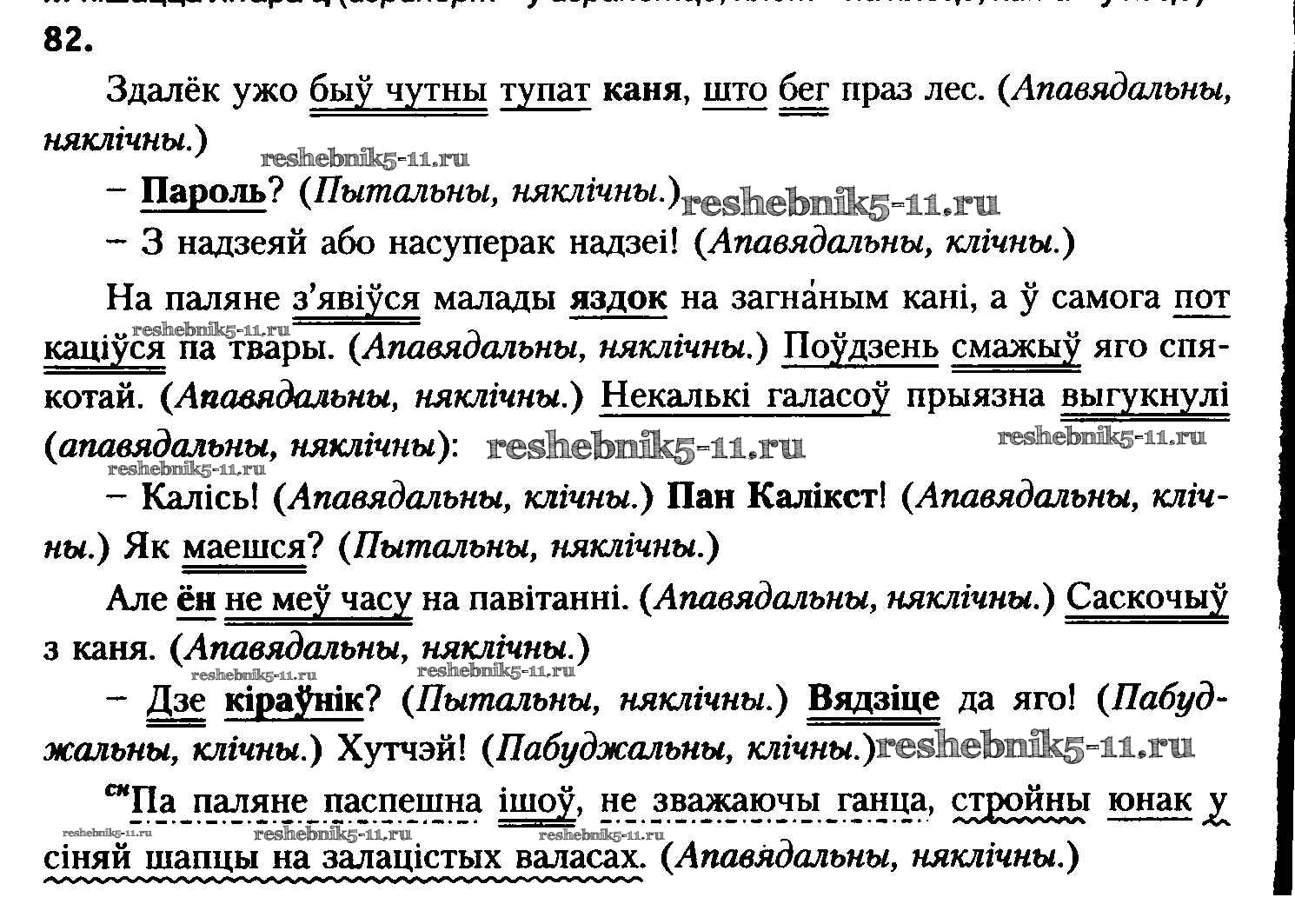 Готовая домашняя работа с ответами по Белорусскому языку за 8 класс Бадзевіч, Саматыя Учебник Национальный институт образования 2015 ФГОС - Упражнения 82