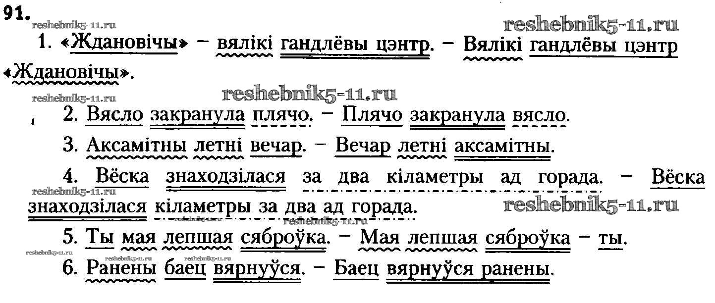 Готовая домашняя работа с ответами по Белорусскому языку за 8 класс Бадзевіч, Саматыя Учебник Национальный институт образования 2015 ФГОС - Упражнения 91