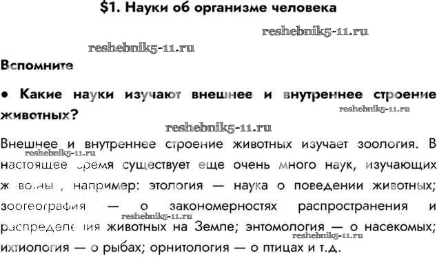 Готовая домашняя работа с ответами по Биологии за 8 класс Драгомилов, Маш Учебник Алгоритм успеха Просвещение 2022 ФГОС - §1 Вспомним