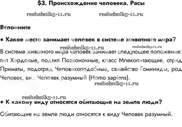 Готовая домашняя работа с ответами по Биологии за 8 класс Драгомилов, Маш Учебник Алгоритм успеха Просвещение 2022 ФГОС - §3 Вспомним