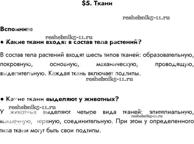 Готовая домашняя работа с ответами по Биологии за 8 класс Драгомилов, Маш Учебник Алгоритм успеха Просвещение 2022 ФГОС - §5 Вспомним