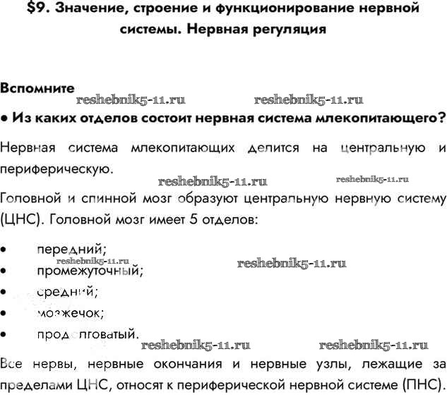 Готовая домашняя работа с ответами по Биологии за 8 класс Драгомилов, Маш Учебник Алгоритм успеха Просвещение 2022 ФГОС - §9 Вспомним