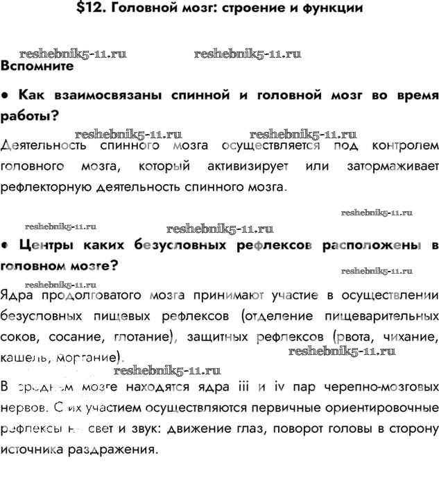 Готовая домашняя работа с ответами по Биологии за 8 класс Драгомилов, Маш Учебник Алгоритм успеха Просвещение 2022 ФГОС - §12 Вспомним