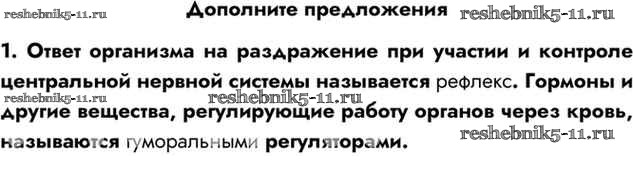 Готовая домашняя работа с ответами по Биологии за 8 класс Драгомилов, Маш Учебник Алгоритм успеха Просвещение 2022 ФГОС - Дополните предложения 1