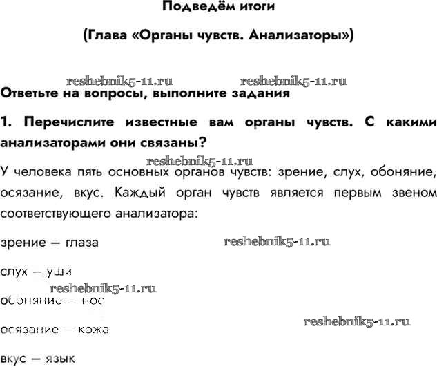 Готовая домашняя работа с ответами по Биологии за 8 класс Драгомилов, Маш Учебник Алгоритм успеха Просвещение 2022 ФГОС - Подведём итоги 1
