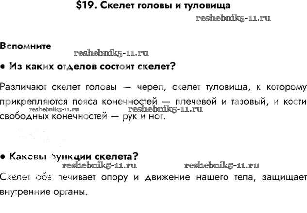 Готовая домашняя работа с ответами по Биологии за 8 класс Драгомилов, Маш Учебник Алгоритм успеха Просвещение 2022 ФГОС - §19 Вспомним