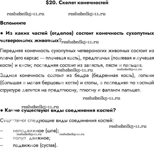 Готовая домашняя работа с ответами по Биологии за 8 класс Драгомилов, Маш Учебник Алгоритм успеха Просвещение 2022 ФГОС - §20 Вспомним