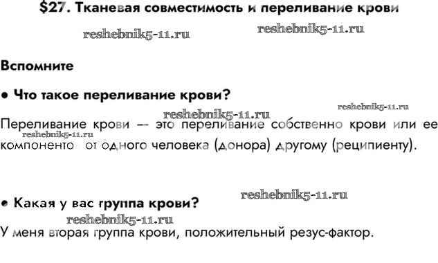 Готовая домашняя работа с ответами по Биологии за 8 класс Драгомилов, Маш Учебник Алгоритм успеха Просвещение 2022 ФГОС - §27 Вспомним