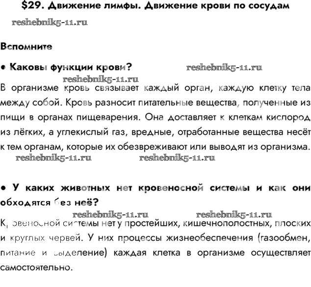 Готовая домашняя работа с ответами по Биологии за 8 класс Драгомилов, Маш Учебник Алгоритм успеха Просвещение 2022 ФГОС - §29 Вспомним