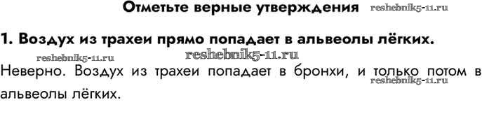 Готовая домашняя работа с ответами по Биологии за 8 класс Драгомилов, Маш Учебник Алгоритм успеха Просвещение 2022 ФГОС - Отметьте верные утверждения 1