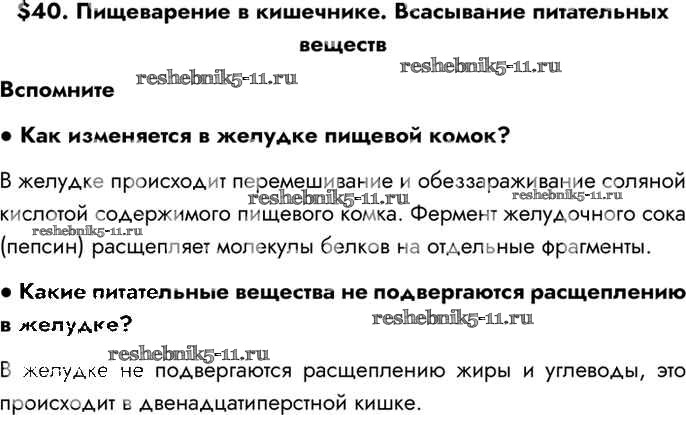 Готовая домашняя работа с ответами по Биологии за 8 класс Драгомилов, Маш Учебник Алгоритм успеха Просвещение 2022 ФГОС - §40 Вспомним