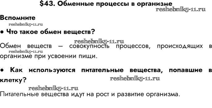 Готовая домашняя работа с ответами по Биологии за 8 класс Драгомилов, Маш Учебник Алгоритм успеха Просвещение 2022 ФГОС - §43 Вспомним