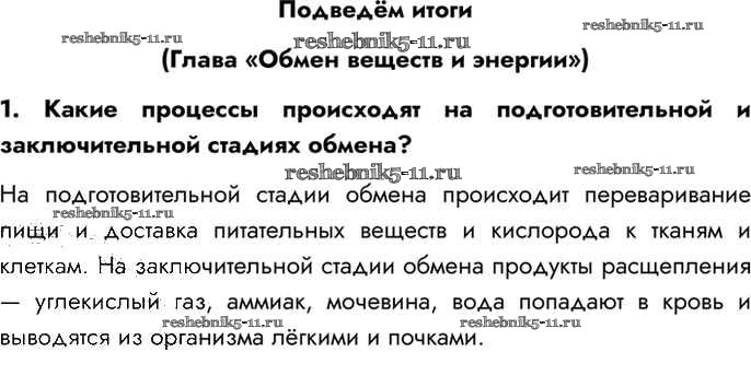 Готовая домашняя работа с ответами по Биологии за 8 класс Драгомилов, Маш Учебник Алгоритм успеха Просвещение 2022 ФГОС - Подведём итоги 1