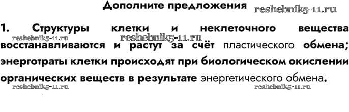 Готовая домашняя работа с ответами по Биологии за 8 класс Драгомилов, Маш Учебник Алгоритм успеха Просвещение 2022 ФГОС - Дополните предложения 1