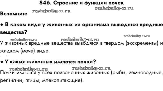 Готовая домашняя работа с ответами по Биологии за 8 класс Драгомилов, Маш Учебник Алгоритм успеха Просвещение 2022 ФГОС - §46 Вспомним