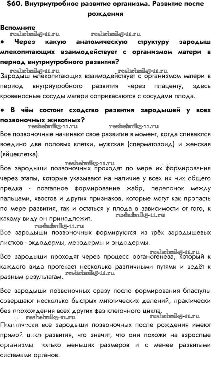 Готовая домашняя работа с ответами по Биологии за 8 класс Драгомилов, Маш Учебник Алгоритм успеха Просвещение 2022 ФГОС - §60 вспомним