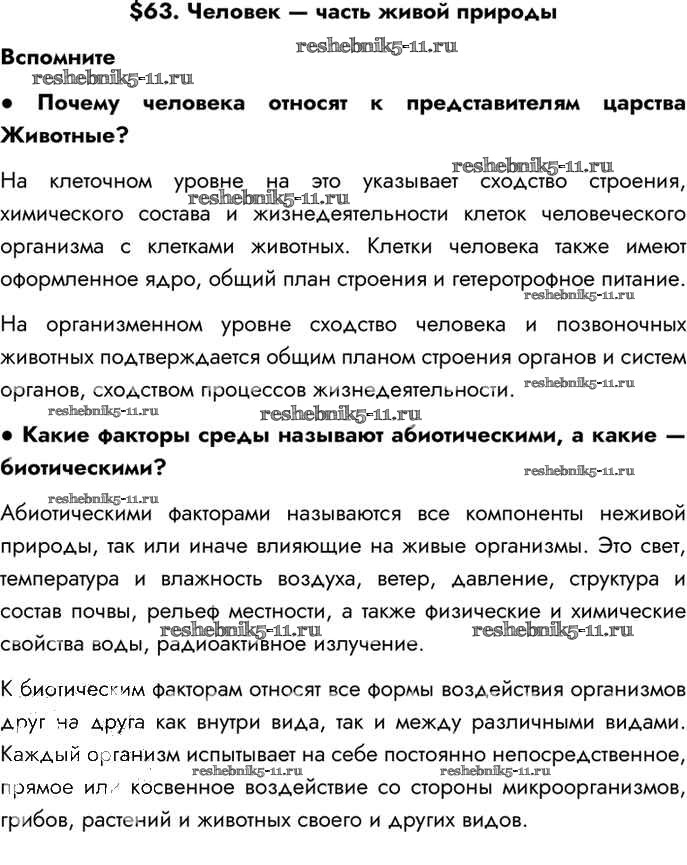 Готовая домашняя работа с ответами по Биологии за 8 класс Драгомилов, Маш Учебник Алгоритм успеха Просвещение 2022 ФГОС - §63 Вспомним