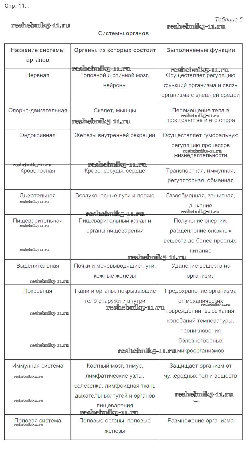 Готовая домашняя работа с ответами по Биологии за 8 класс Бодрова Рабочая тетрадь М-книга 2017 ФГОС - Страницы 11
