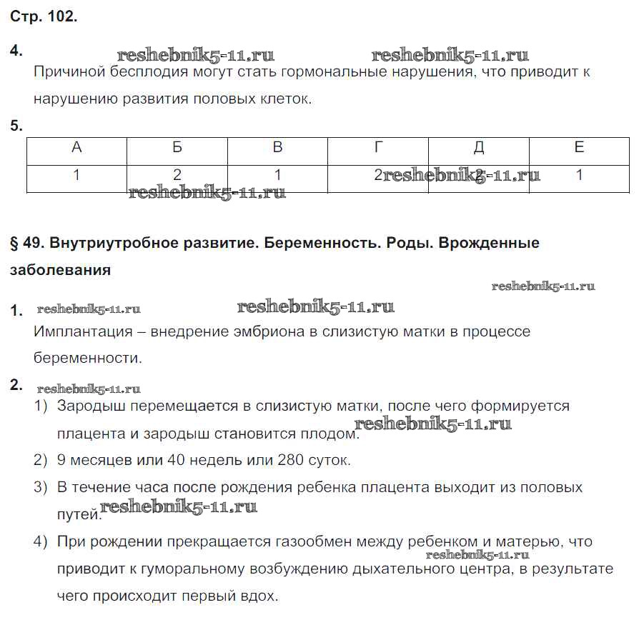 Готовая домашняя работа с ответами по Биологии за 8 класс Жемчугова, Романова Рабочая тетрадь Инновационная школа Русское слово 2017 ФГОС - Страницы 102