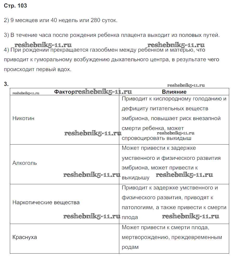 Готовая домашняя работа с ответами по Биологии за 8 класс Жемчугова, Романова Рабочая тетрадь Инновационная школа Русское слово 2017 ФГОС - Страницы 103