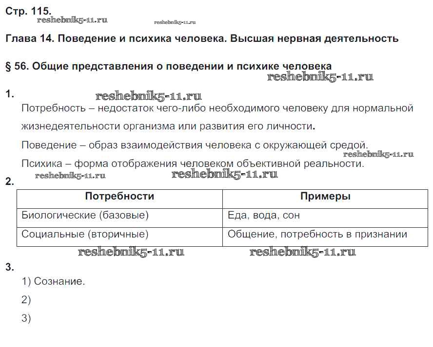 Готовая домашняя работа с ответами по Биологии за 8 класс Жемчугова, Романова Рабочая тетрадь Инновационная школа Русское слово 2017 ФГОС - Страницы 115