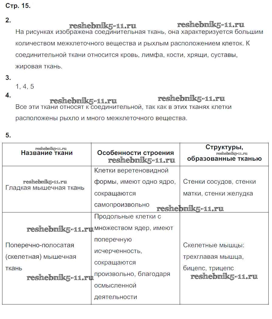 Готовая домашняя работа с ответами по Биологии за 8 класс Жемчугова, Романова Рабочая тетрадь Инновационная школа Русское слово 2017 ФГОС - Страницы 15