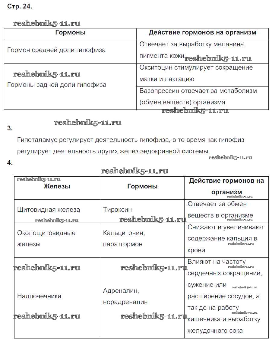 Готовая домашняя работа с ответами по Биологии за 8 класс Жемчугова, Романова Рабочая тетрадь Инновационная школа Русское слово 2017 ФГОС - Страницы 24