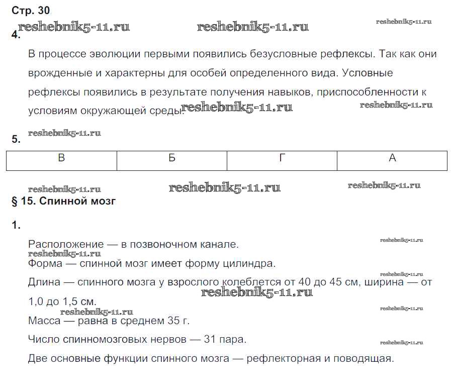 Готовая домашняя работа с ответами по Биологии за 8 класс Жемчугова, Романова Рабочая тетрадь Инновационная школа Русское слово 2017 ФГОС - Страницы 30