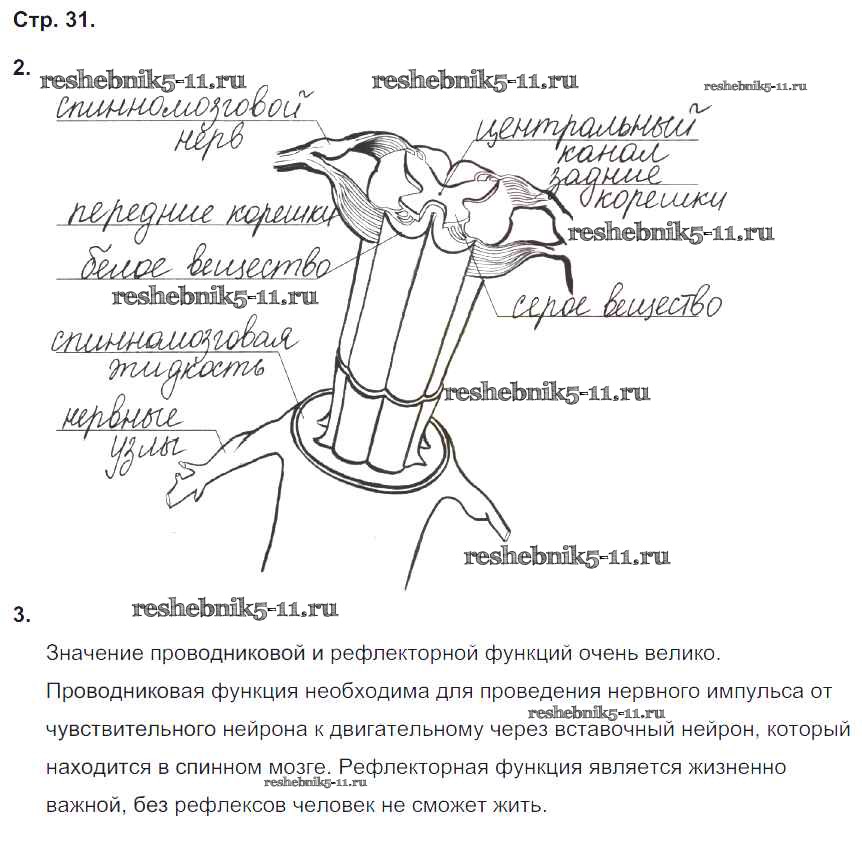 Готовая домашняя работа с ответами по Биологии за 8 класс Жемчугова, Романова Рабочая тетрадь Инновационная школа Русское слово 2017 ФГОС - Страницы 31