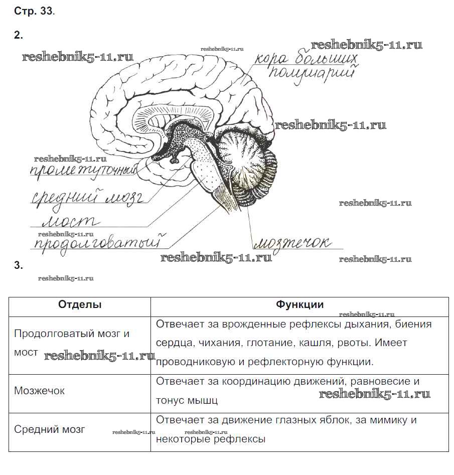 Готовая домашняя работа с ответами по Биологии за 8 класс Жемчугова, Романова Рабочая тетрадь Инновационная школа Русское слово 2017 ФГОС - Страницы 33