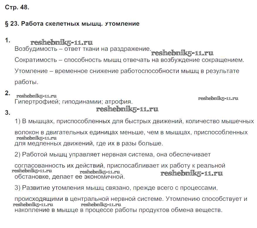 Готовая домашняя работа с ответами по Биологии за 8 класс Жемчугова, Романова Рабочая тетрадь Инновационная школа Русское слово 2017 ФГОС - Страницы 48