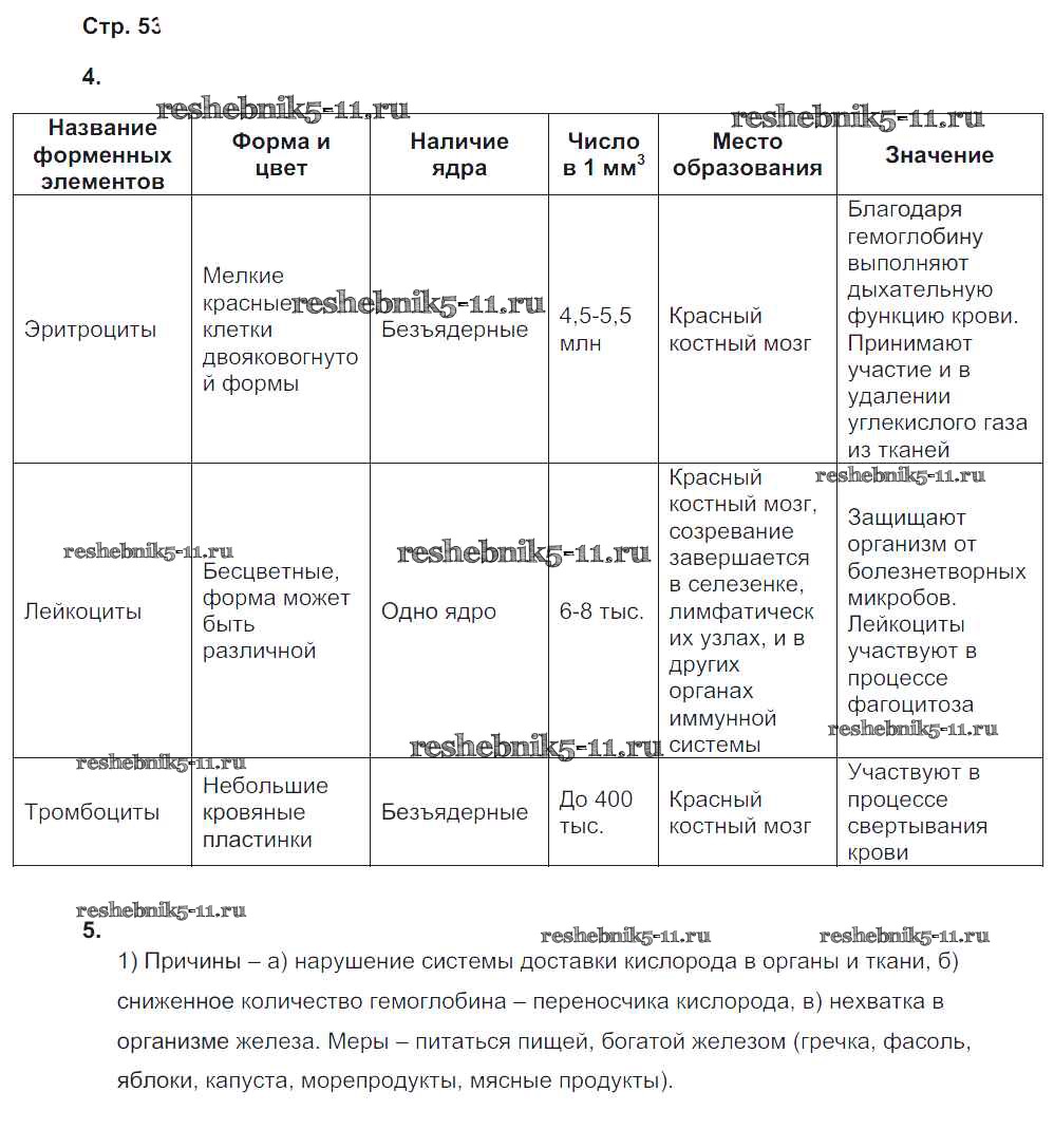 Готовая домашняя работа с ответами по Биологии за 8 класс Жемчугова, Романова Рабочая тетрадь Инновационная школа Русское слово 2017 ФГОС - Страницы 53