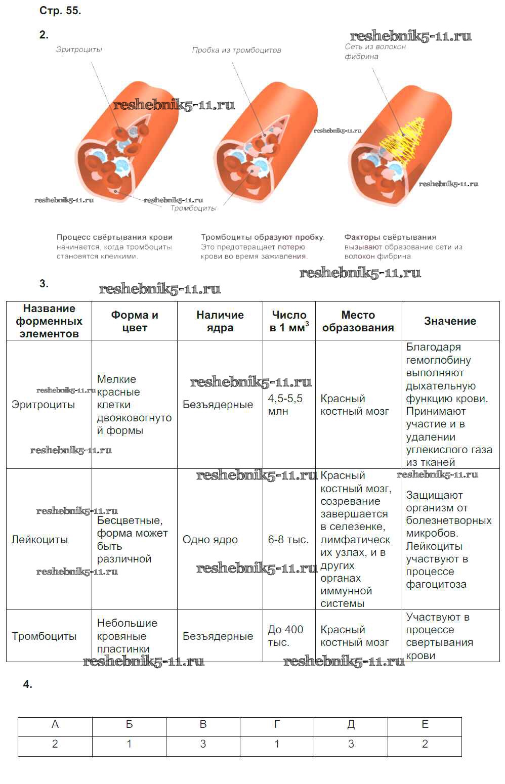 Готовая домашняя работа с ответами по Биологии за 8 класс Жемчугова, Романова Рабочая тетрадь Инновационная школа Русское слово 2017 ФГОС - Страницы 55