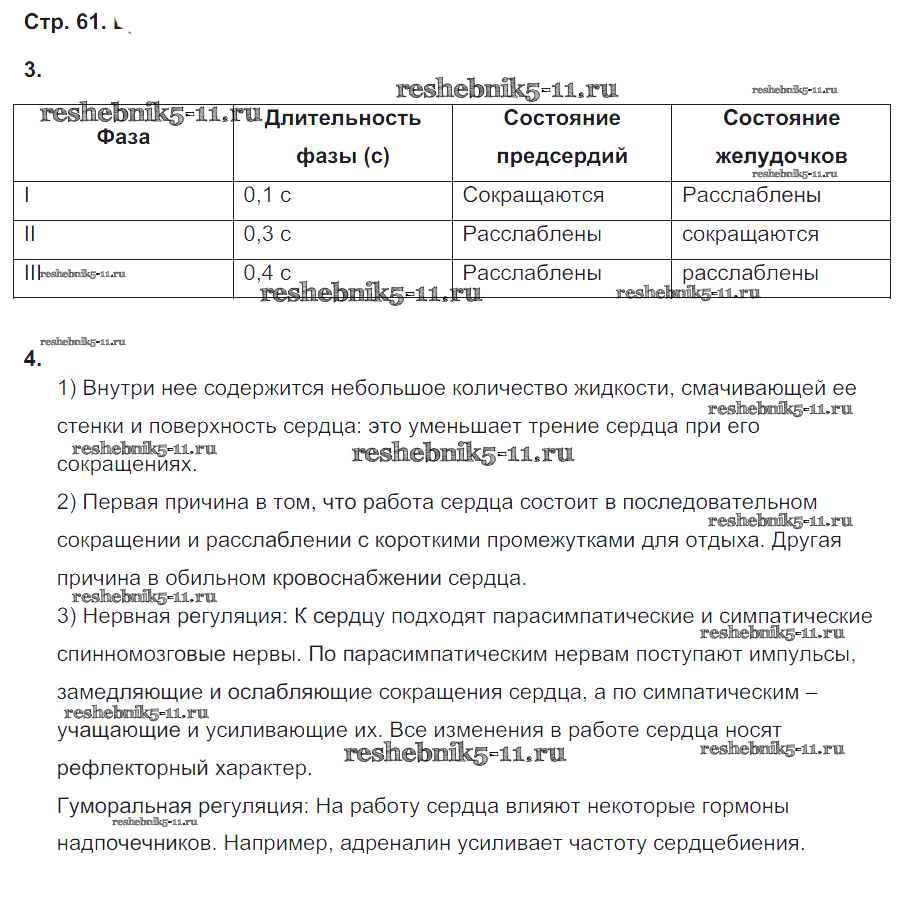Готовая домашняя работа с ответами по Биологии за 8 класс Жемчугова, Романова Рабочая тетрадь Инновационная школа Русское слово 2017 ФГОС - Страницы 61