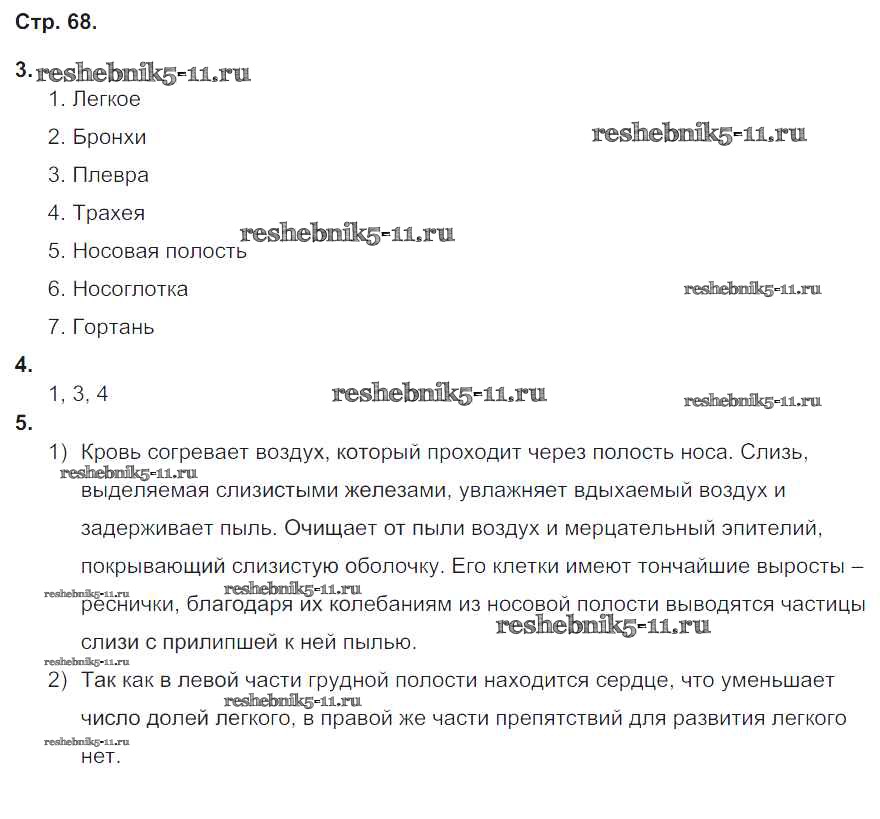 Готовая домашняя работа с ответами по Биологии за 8 класс Жемчугова, Романова Рабочая тетрадь Инновационная школа Русское слово 2017 ФГОС - Страницы 68