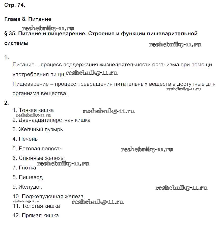 Готовая домашняя работа с ответами по Биологии за 8 класс Жемчугова, Романова Рабочая тетрадь Инновационная школа Русское слово 2017 ФГОС - Страницы 74
