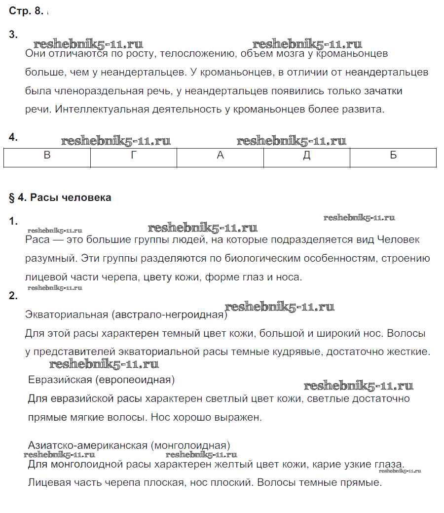 Готовая домашняя работа с ответами по Биологии за 8 класс Жемчугова, Романова Рабочая тетрадь Инновационная школа Русское слово 2017 ФГОС - Страницы 8