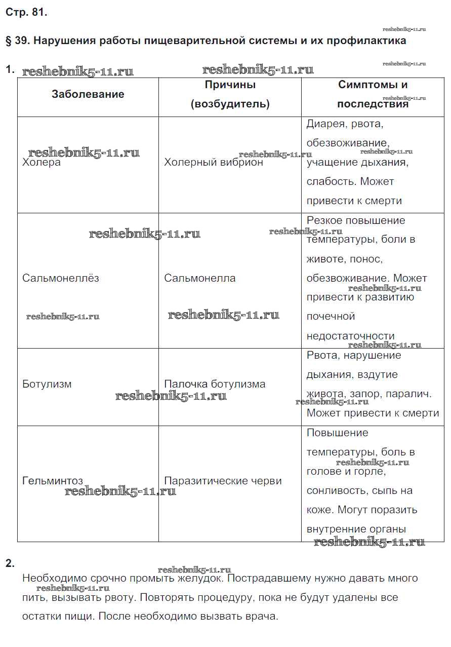 Готовая домашняя работа с ответами по Биологии за 8 класс Жемчугова, Романова Рабочая тетрадь Инновационная школа Русское слово 2017 ФГОС - Страницы 81