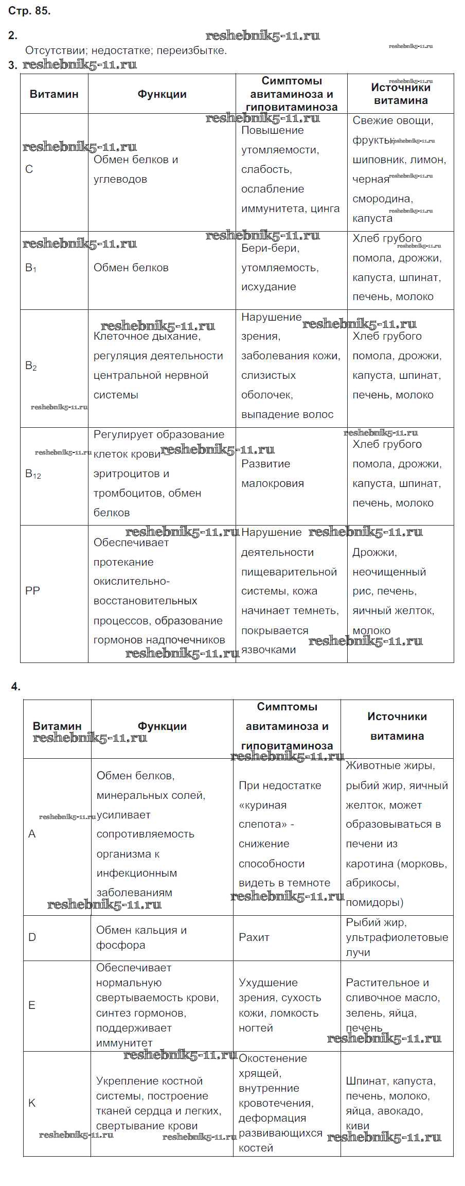 Готовая домашняя работа с ответами по Биологии за 8 класс Жемчугова, Романова Рабочая тетрадь Инновационная школа Русское слово 2017 ФГОС - Страницы 85
