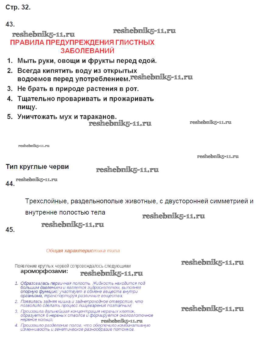 Готовая домашняя работа с ответами по Биологии за 8 класс Захаров, Сонина Рабочая тетрадь УМК Дрофа 2018 ФГОС - Страницы 32