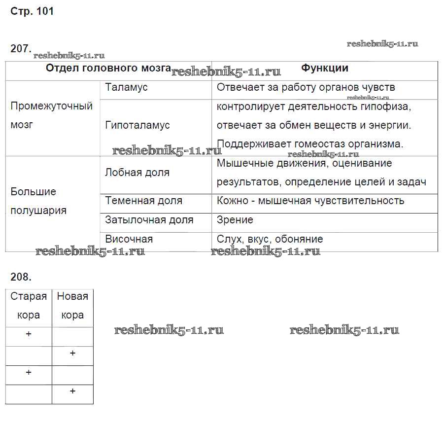 Готовая домашняя работа с ответами по Биологии за 8 класс Колесов, Маш, Беляев Рабочая тетрадь УМК Дрофа 2018 ФГОС - Страницы 101