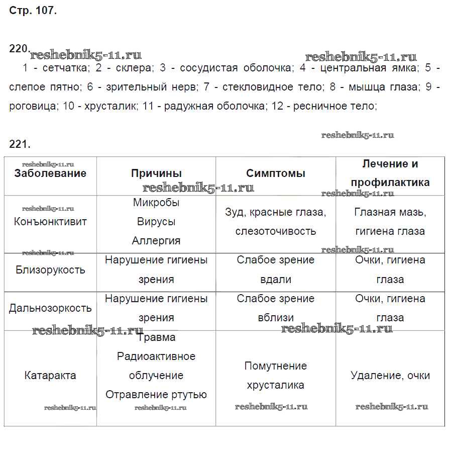 Готовая домашняя работа с ответами по Биологии за 8 класс Колесов, Маш, Беляев Рабочая тетрадь УМК Дрофа 2018 ФГОС - Страницы 107